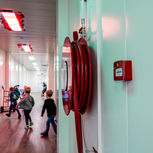 Een volledig uitgeruste oplossing voor tijdelijke klasruimte met Fire-X modulaire units en geselecteerde 360° Services, ontworpen om een basisschool comfort en veiligheid te bieden, zodat leren zonder compromissen kan doorgaan.